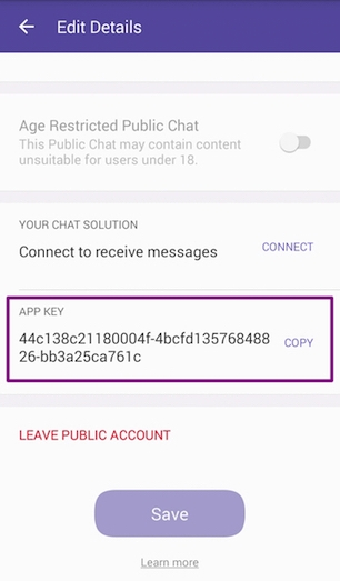 The authentication token (also known as application key) is a unique and secret account identifier. Each API request must include an HTTP Header called X-Viber-Auth-Token containing the account’s authentication token.